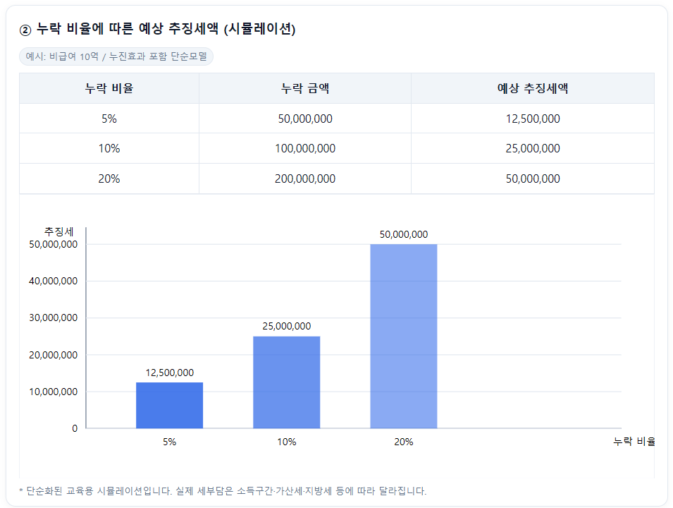 결국 단순히 매출 누락 하나가 수억 원의 세금 환수로 이어지는 겁니다.
