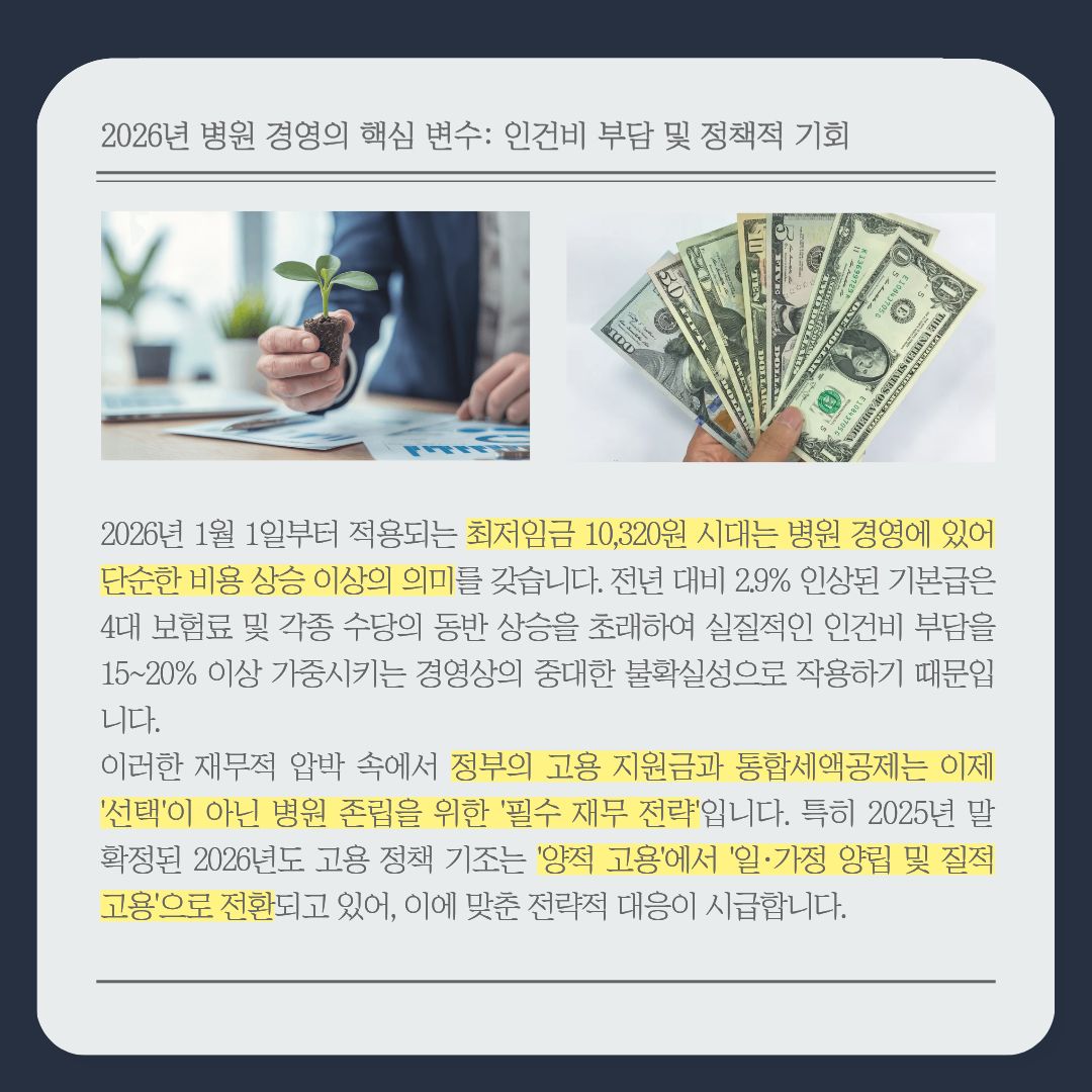 2026년 병원 경영의 핵심 변수: 인건비 부담 및 정책적 기회