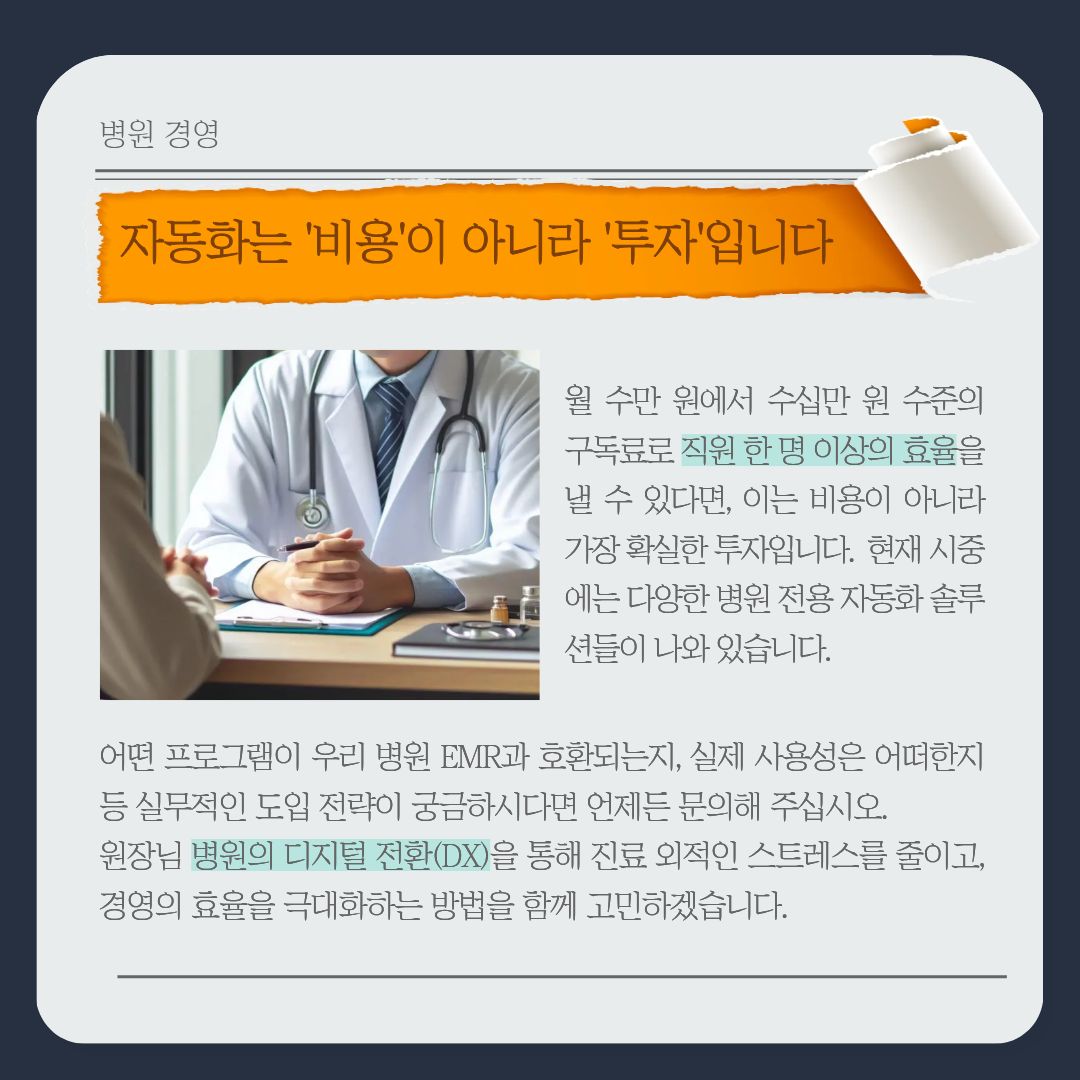 인건비는 오르는데 업무는 그대로? 병원 수익 구조를 바꾸는 '3단계 자동화' 로드맵