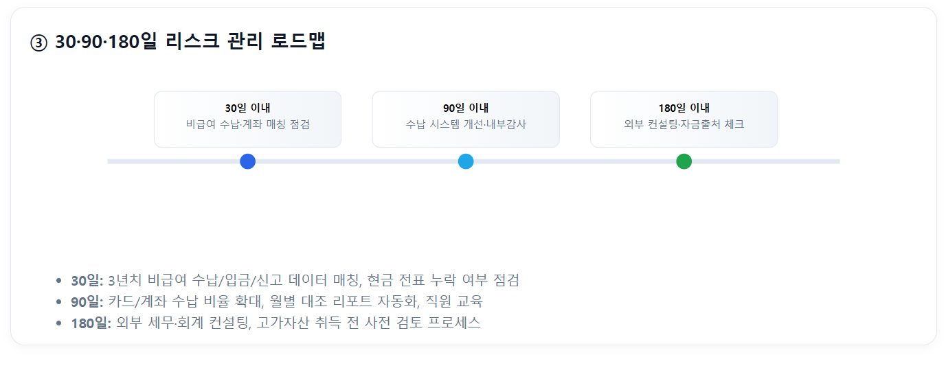 대부분 기록 관리 또는 증빙 절차가 불완전해서 발생합니다.