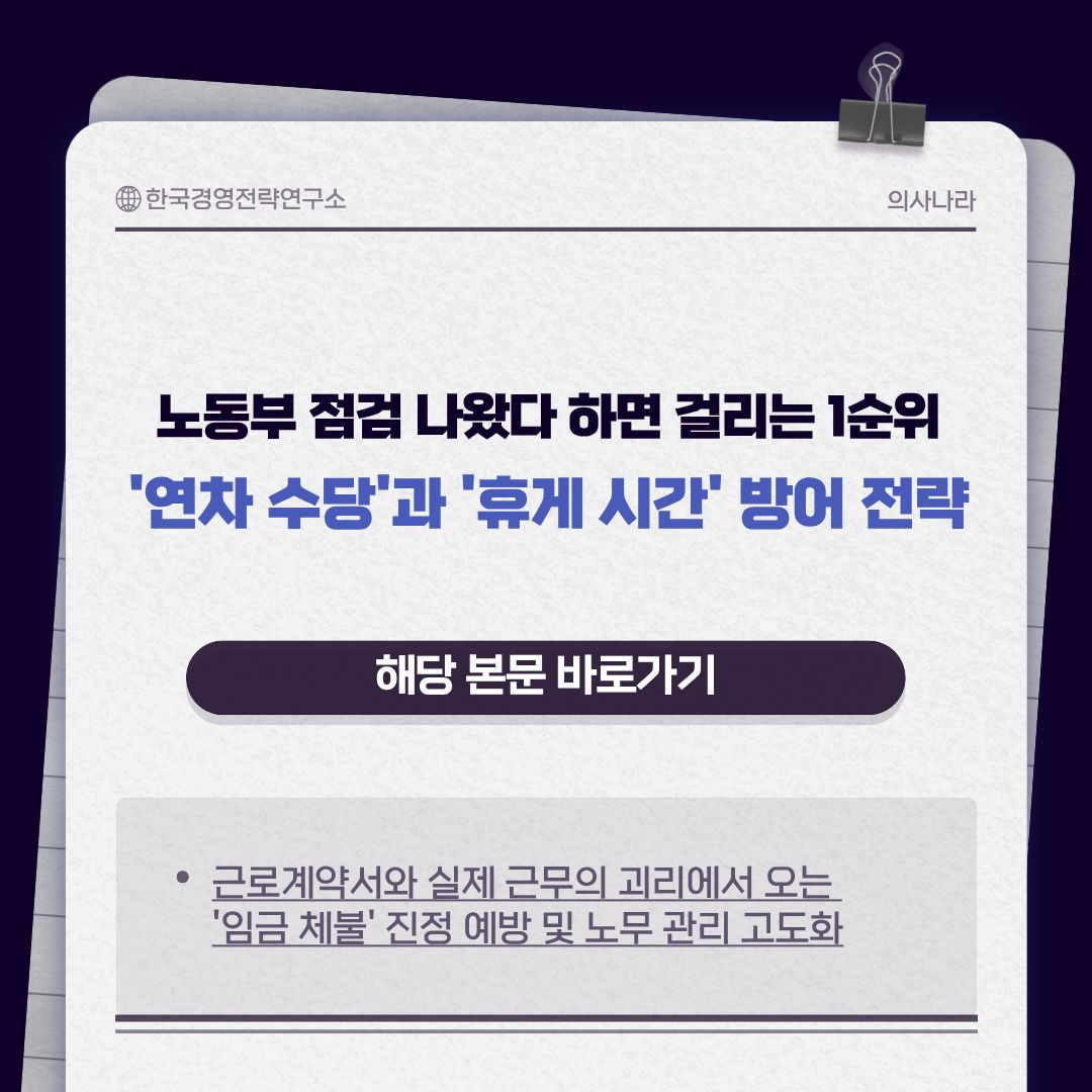 노동부 점검 나왔다 하면 걸리는 1순위: '연차 수당'과 '휴게 시간' 방어 전략