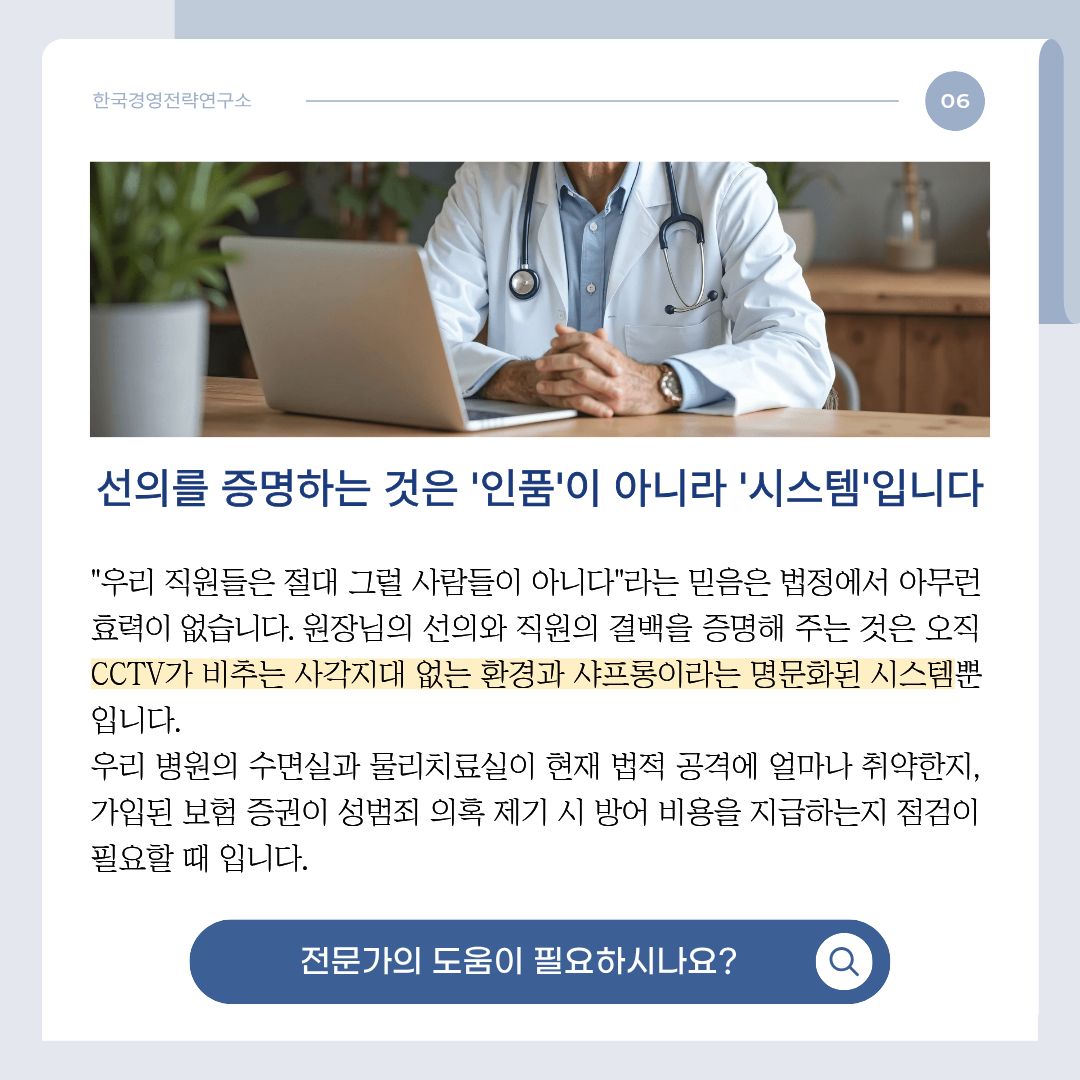 [수면 내시경·물리치료실의 잠재적 위협을 차단하는 샤프롱시스템과 배상책임의 한계]